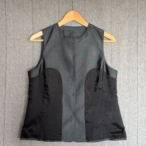 Jones New York 100% Silk Gray Tweed Button Front Vest Sleeveless Top Size 12