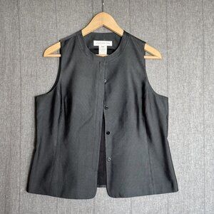 Jones New York 100% Silk Gray Tweed Button Front Vest Sleeveless Top Size 12