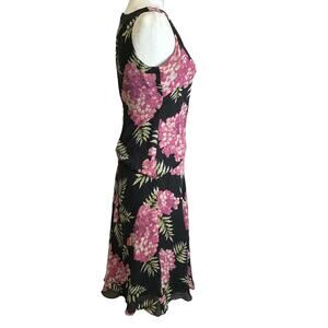 Jones New York 100% Silk Lagenlook Sleeveless Maxi Dress Women sz. 4 Black Pink