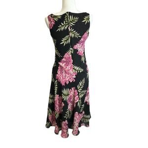 Jones New York 100% Silk Lagenlook Sleeveless Maxi Dress Women’s sz. 4 Black Pink Floral Flowy. This dress is in fair condition, unfortunately silk is very sensitive so you’ll see some tiny rips and also thread that are kind of showing in the waist stitching. For more details, please see pictures coz I have included all possible flaws I can see. Thank you.