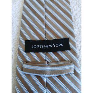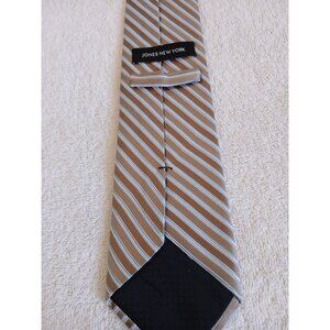 Jones New York 100% Silk Striped Mens Tie Brown Blue Pink Necktie Office Career