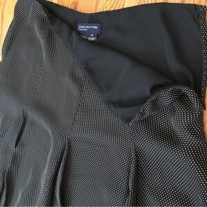 Jones New York 100% Silk White Dots Black Flowy Midi Skirt