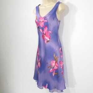 Jones New York Sz 8- Layered Floral Silk Chiffon - Lilac & Mulberry Floral Colors