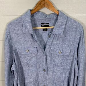 Jones New York 100% linen light blue button down shacket Womans size 1X