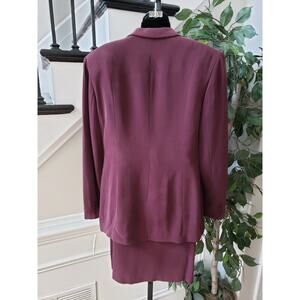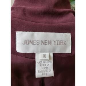 Jones New York 2 Piece Skirt Suit Silk 10 Burgundy Single Breasted 1 Button