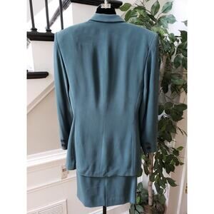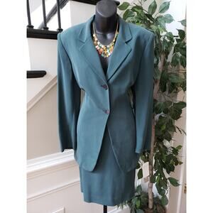 Jones New York 2 Piece Skirt Suit Silk Size 10 Green Single Breasted 2 Button