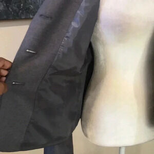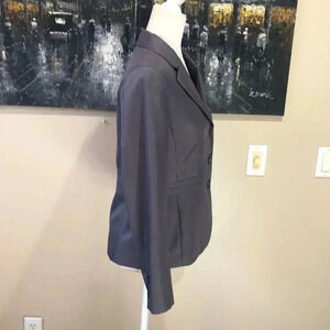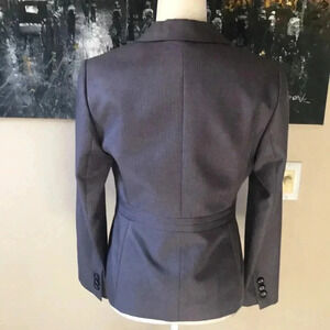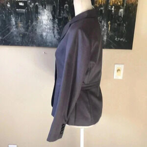 Flattering purple, blue and gray hues, depending on lighting, blazer with three-button closure. Perfect for professional settings.