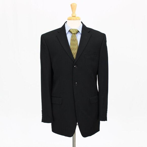 Jones New York 40L Black Solid 3-Button Sport Coat Blazer Jacket B781