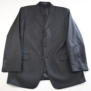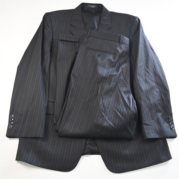 Jones New York 43R 36x30 Black Striped 100% Wool Mens Jacket Pants Suit