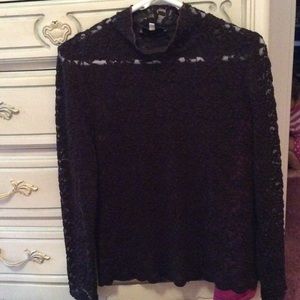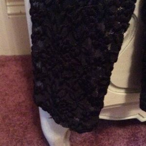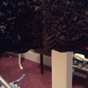 Brown lace overlay with scalloped hem. 61% Polyester 37% Nylon and 2% Spandex