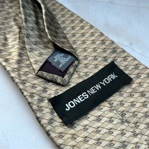 Stylish beige tie with geometric pattern. Ideal for formal events.
