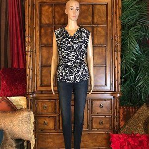 Sublimely elegant worn alone, but she is a must have for layering. Her super stretch, beautiful abstract artwork, and flowy drape make her perfect for the office and right into the night for dinner or cocktails, but pair her with leggings or jeans, top with a denim jacket or blazer and you are ready to rock your everyday style.