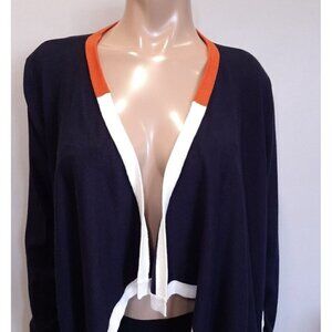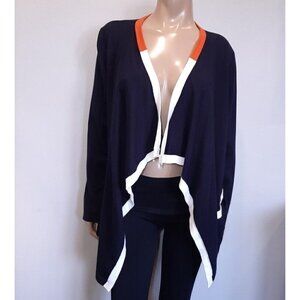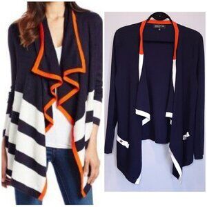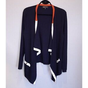 Jones New York Angled Asymmetric Front Nautical Cardigan Sweater Navy White Sz S