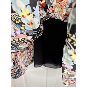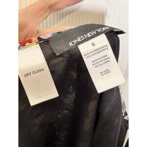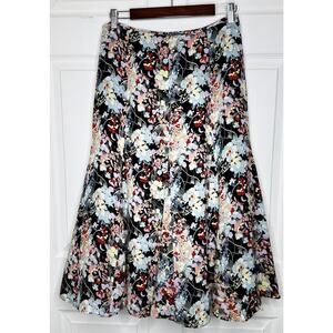 Jones New York Black Colorful Floral Print Midi Skirt Lined Side Zip Size 6
