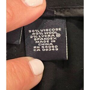 Jones New York Black Flat Front Wool Blend Pants Black Embroidered Cuffs Size 12