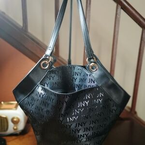 Elegant shoulder bag with glossy finish. Features JNY logo pattern. Ideal for daily use...NO CALL OUTS. Perfect condition