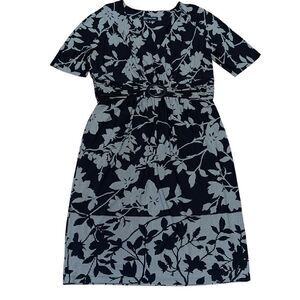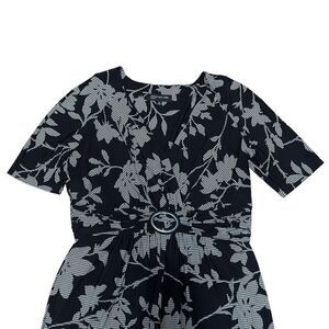 Jones New York Black & Gray Floral Faux Belt Dress Size 16
