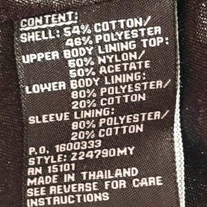 Lower lining + sleeves: 80% Polyester / 20% Cotton
