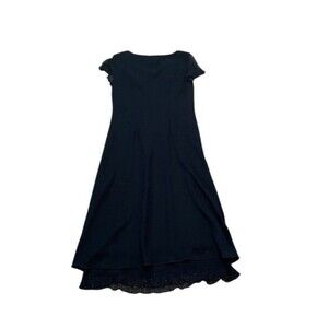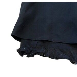Jones New York Black Polyester Silk Dress Size 10 Beaded Hem/Sleeves Sleeveless