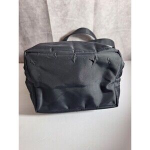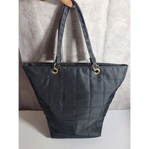 The Jones New York Black Quilted Y2K Shoulder Bag is a stylish and versatile handbag purse, perfect for various occasions including travel, casual outings, workwear, and business meetings. The medium-sized bag features a square shape with a zip closure and black nylon exterior, accented by gold-plated hardware. The boho chic style is achieved through the quilted finish and lined interior with inner pockets, making it both fashionable and practical for everyday use. This classic shoulder bag is a timeless piece that can complement a variety of outfits and character styles such as Claire, hippie, Chelsea, and mom. Has puckering on the bottom. SEE PHOTOS!!