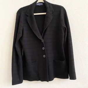 Jones New York Black Rayon Blend Cardigan Sweater Pockets Large Button Up