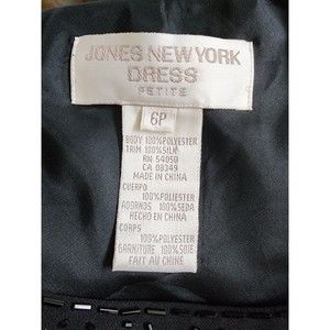 Jones New York Black Sleeveless Embellished Cocktail Dress Size 6P Silk Designer