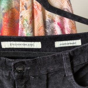 Experience timeless style with these Jones New York black straight leg jeans. Crafted for a sleek and versatile look, they are perfect for any occasion. The classic design ensures a flattering fit and enduring comfort.