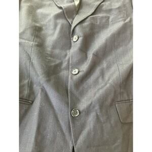 Crafted with impeccable attention to detail, the Jones New York Black Wool Cashmere Stripe Blazer 42L Jacket Coat exudes sophistication and style. This mens' 2-button blazer boasts a timeless design with a modern twist, featuring a sleek black color with subtle stripes that add a touch of elegance. Made from a luxurious blend of wool and cashmere, this blazer offers not only a refined look but also exceptional comfort and warmth. Whether you're heading to a formal event or dressing up your everyday wardrobe, this versatile piece is sure to make a statement. Elevate your ensemble with this distinguished blazer that seamlessly combines classic tailoring with contemporary flair.