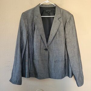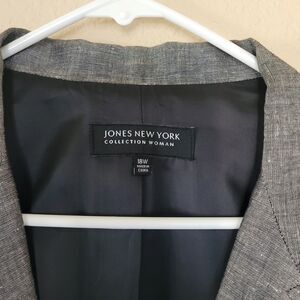 Jones New York Blazer Jacket Womens Size 18W Gray Linen Blend Office Wear Lined