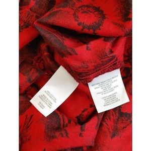 Jones New York Blouse Sz. M Red Black Floral Button Front Cotton French Cuff