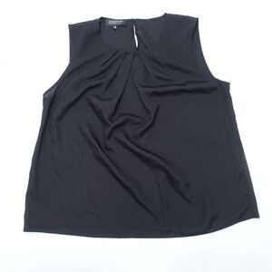 Jones New York Blouse Top Womens 14W Black Polyester Pleated Scoop Neck Pullover