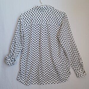 Jones New York Blouse White Black Apple Print Roll Tab Sleeves Womens Medium