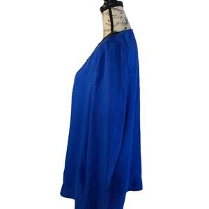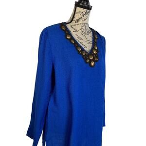 Jones New York Blouse Women’s Large V-Neck Bead Trim Long Sleeve Cobalt Blue NEW
