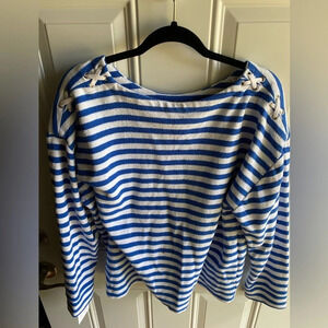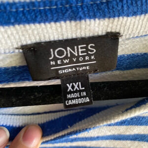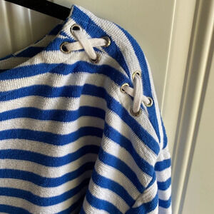 Jones New York Blue And White Striped Sweater Lace Up Shoulder Size XXL EUC