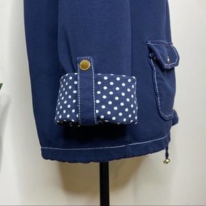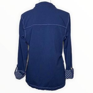 Jones New York Blue Cotton Jersey Jacket Nautical Snap Polka Dot Accent Utility