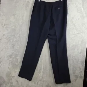These Jones New York trousers in a rich blue hue feature a straight leg cut and an elastic waistband for a comfortable fit. Made from a stretchy material, they offer a sleek and versatile look suitable for various occasions. The trousers boast a clean design, making them a staple piece in any wardrobe.