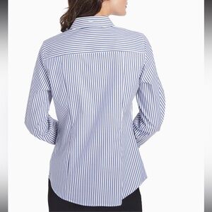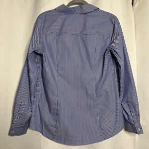 Jones New York Blue and White Striped Easy-Care Button-Up Shirt Small