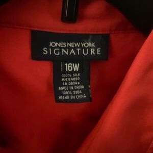 Jones New York Bold Red Silk Short Sleeve Plus Size 16 Button Down Shirt Dress