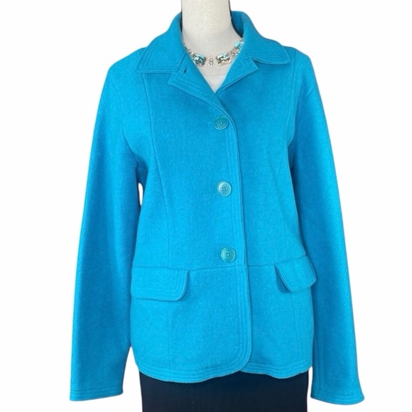 Jones New York Bright Turquoise Wool Blend Coat Sz Lg