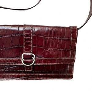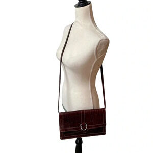 Jones New York Brown Croc Embossed Leather Bag | Convertible Crossbody Clutch