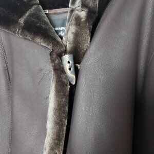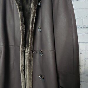 Jones New York Brown Faux Vegan Leather Fur Coat NWT size Large toggle button