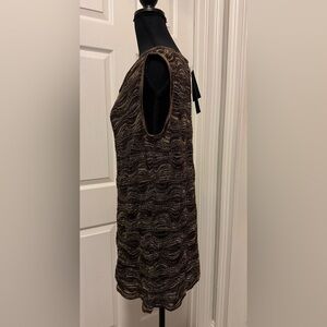 Stylish sleeveless sweater. Features a wave pattern. Perfect for layering.
