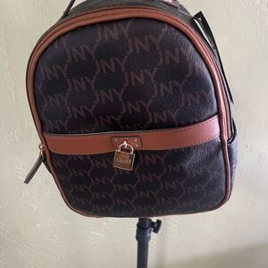 This Jones New York backpack showcases a sleek and compact design in a rich brown hue, perfect for everyday adventures. Crafted with attention to detail, it combines functionality with a touch of elegance, making it an ideal choice for those who appreciate both style and practicality.
