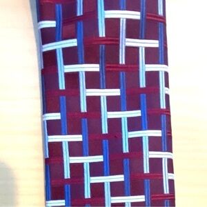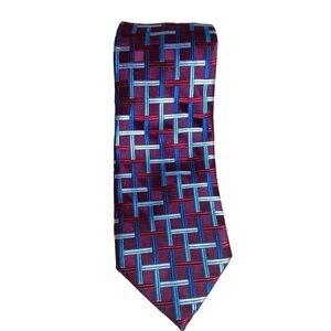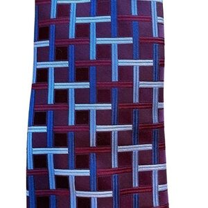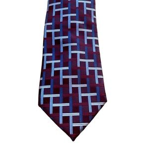 Jones New York Burgundy silver blue geometric square print necktie 100% silk