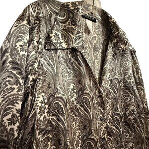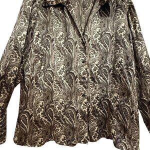 Jones New York Button Up Grey Paisley Blouse SZ 20W Silk Formal Career