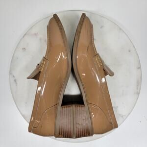 Jones New York Cabeela Loafers Womens 10 Tan Faux Patent Leather Chunky Heels