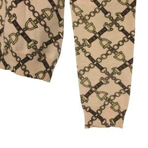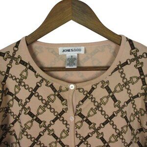 Jones New York Cardigan Silk Blend Sze S Equestrian Bridle Pattern Old Money