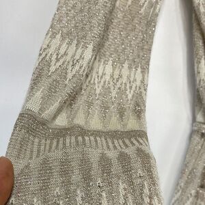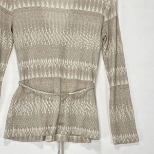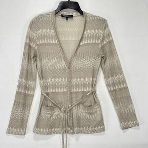 Jones New York Cardigan Sweater Sz PS Taupe Metallic Long Sleeve Top Tie Front
