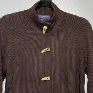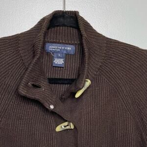 Jones New York Cardigan Sweater Toggle Button Ribbed Knit Long Sleeve Brown L