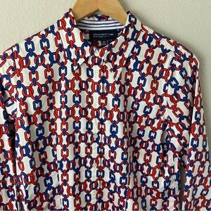 Jones New York Chain Link Button Front Top 100% Cotton Nautical Coastal